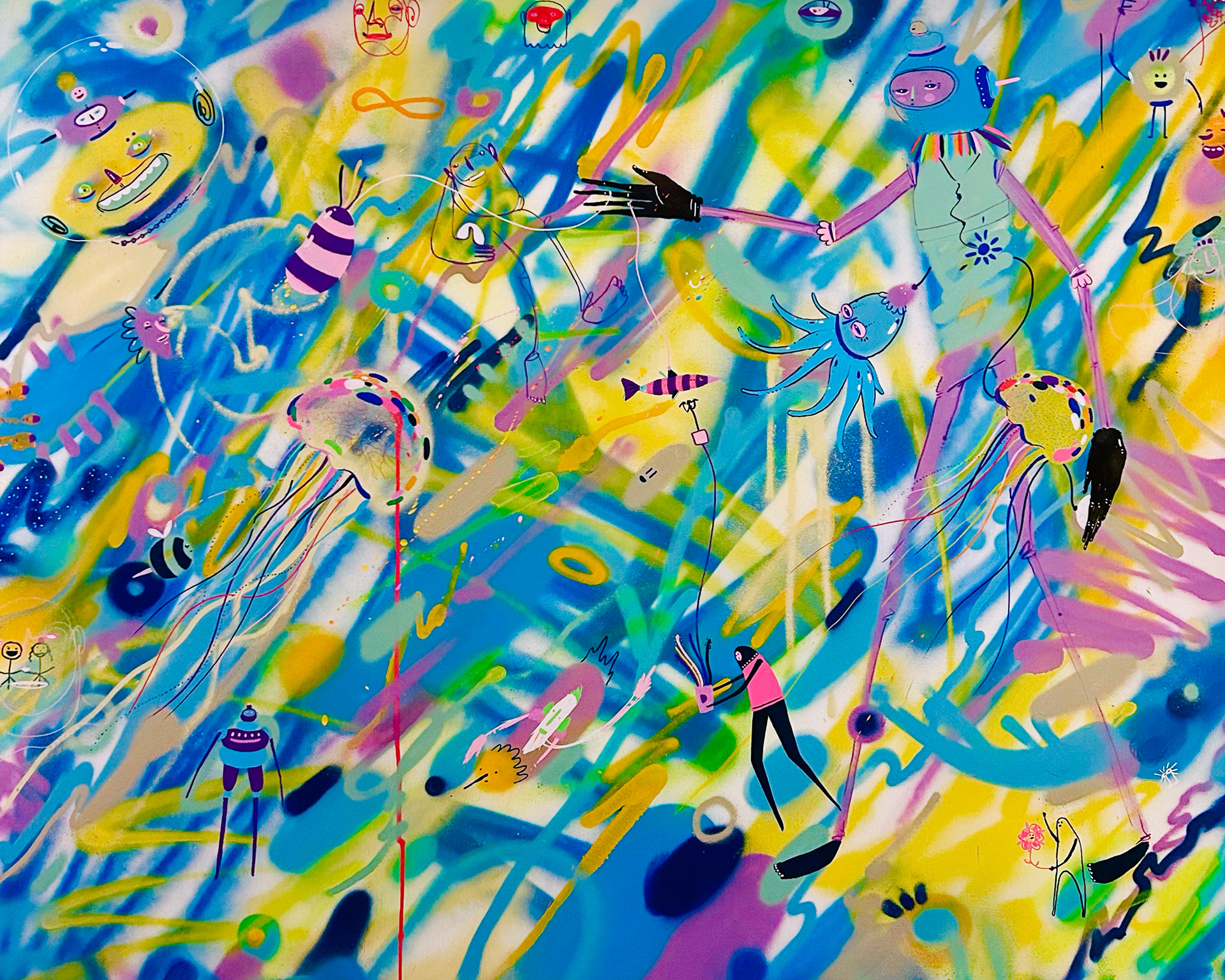 hurricane underwater, 2023 - spray paint, acrylic and marker on canvas - 60in x 48in